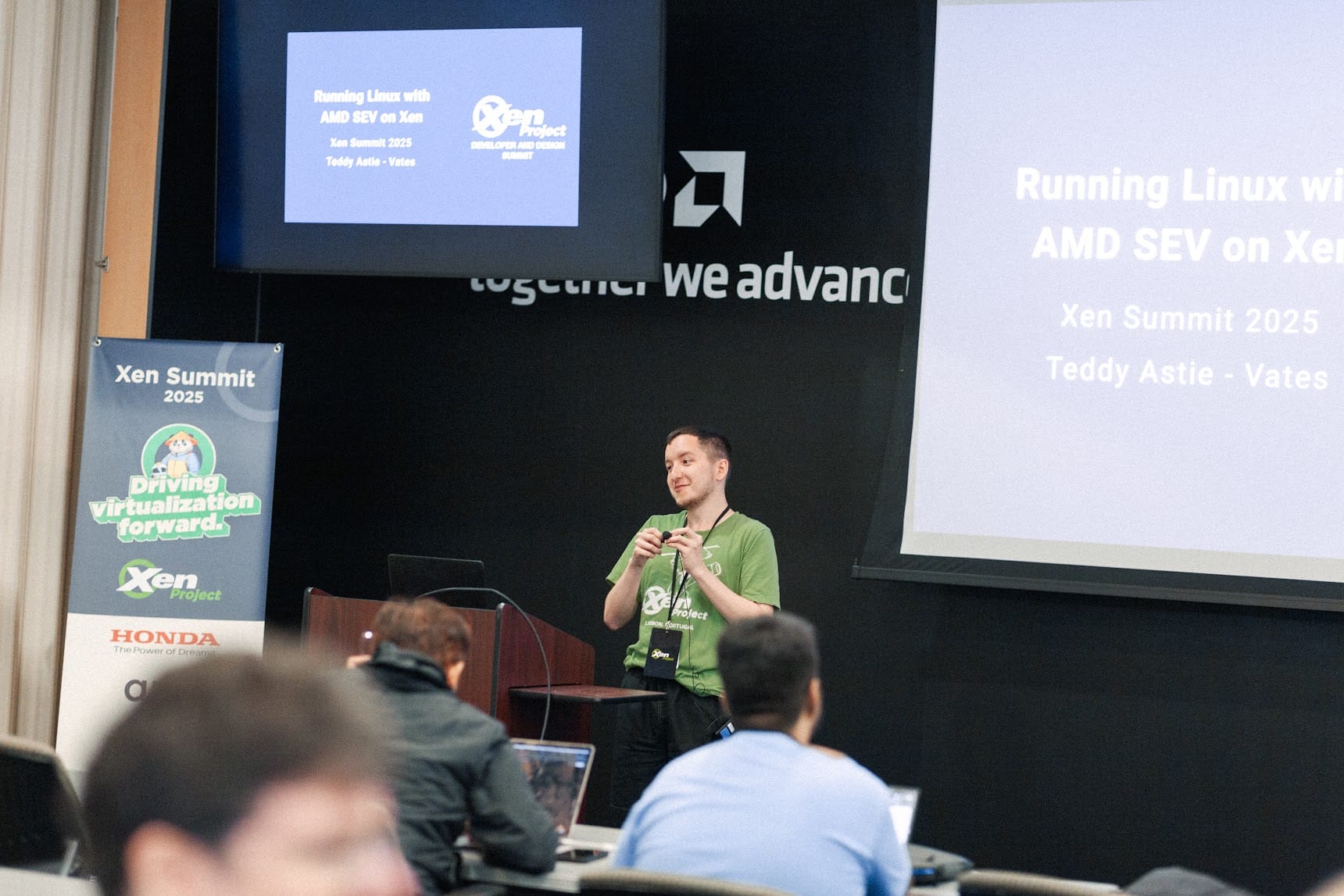 Anthony provided an insightful retrospective of the Xen toolstack, from XAPI’s early architecture to the new directions being discussed within the community. The session highlighted how Vates engineers are helping shape the next-generation management stack, with improved modularity and security.