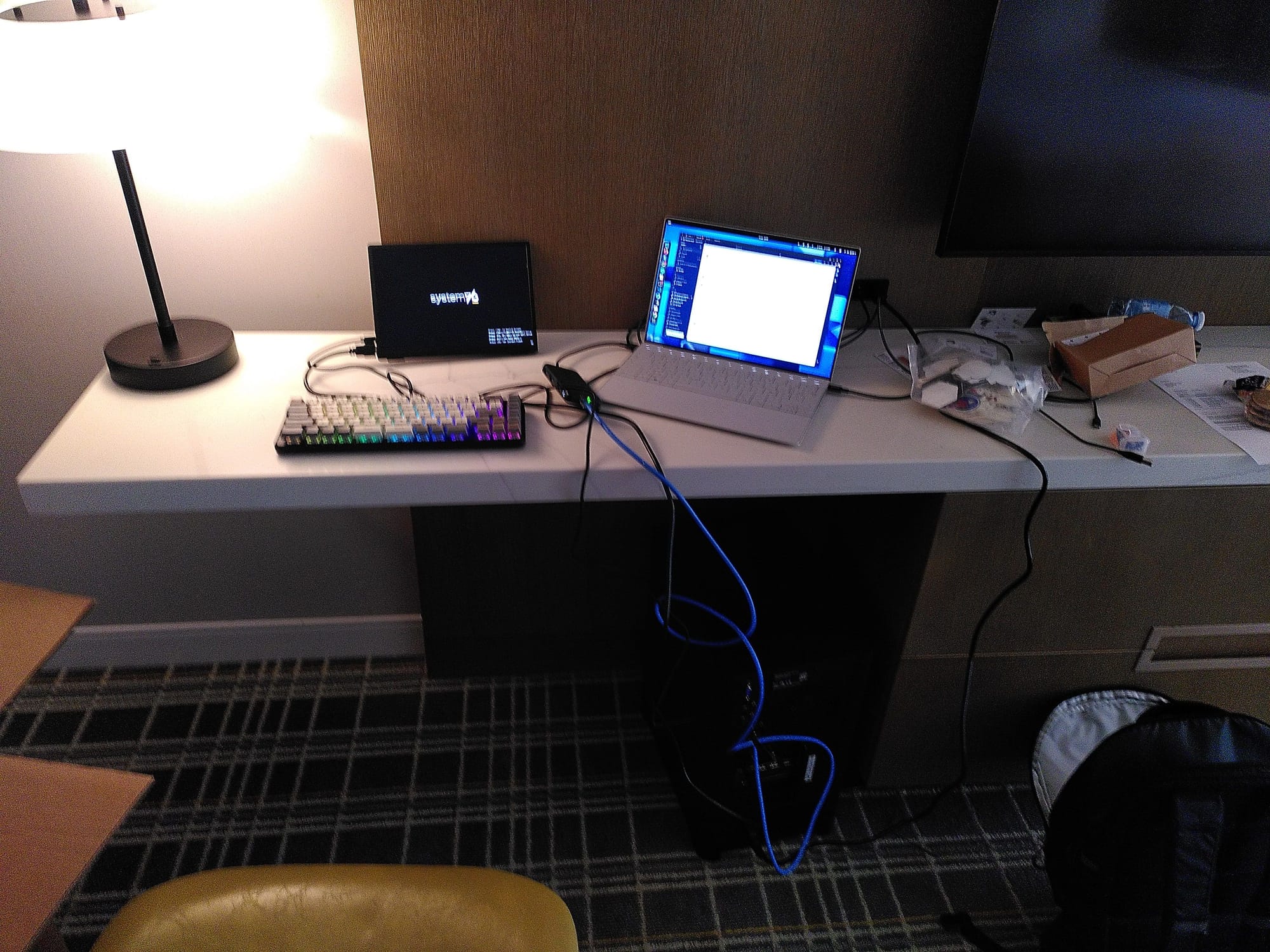 The technical work came with practical challenges. The demo machine was first prepared remotely inside System76âs offices, but the final setup happened in a hotel room in Atlanta. Accessing the server involved navigating multiple layers of networking over unstable hotel WiFi, with a jet-lagged Nathanael calling hotel IT multiple times a day to get connectivity restored. The final setup even stretched across travel schedules, as part of the work was carried out from a moving car while the team stayed connected from wherever they were, all across time zones.