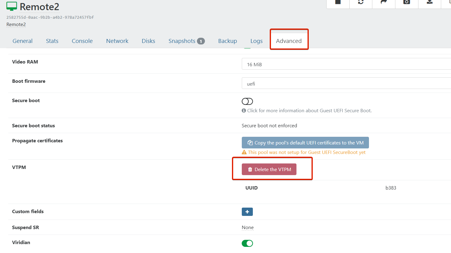 Before you use the Windows 11 Template and you have it with SYSPREP ready. You need to go down to advanced and make sure you delete the VTPM