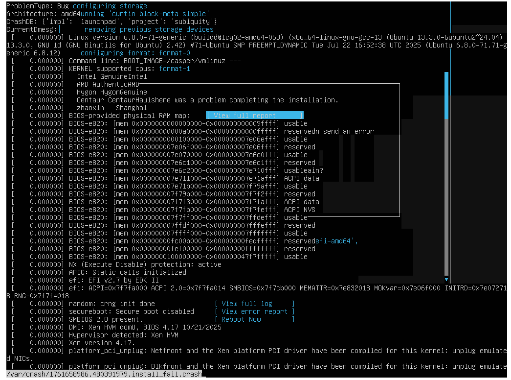 Error installing Ubuntu 24.04 on new xcp-ng host.