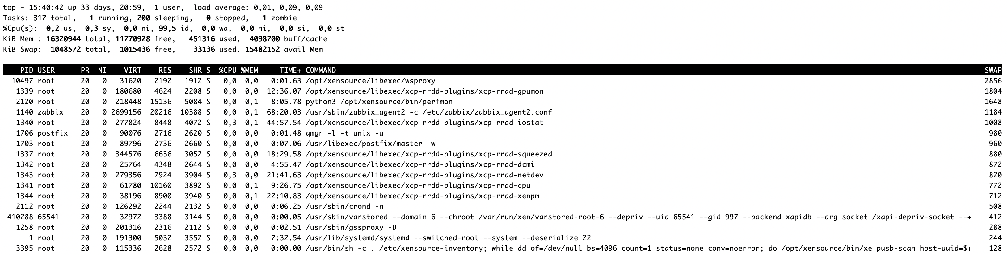 I have attached a screenshot of the top command with the swap column sorted.P.S. The system is xcp-ng 8.3 with all the latest updates.