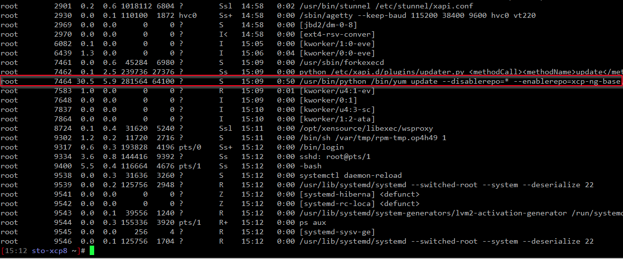 but indeed, there is a floating moment where the web ui cant connect to updater and it is doing its magic, up to an automatic toolstack restart where you host come back with the "need reboot" icon