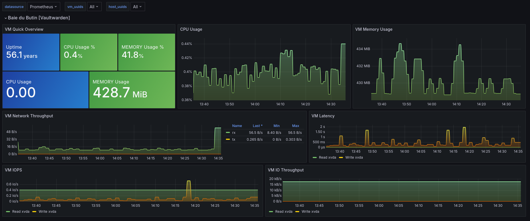 I'm creating this topic to showcase what's possible with the new Openmetrics data exports in Xen Orchestra using Prometheus and Grafana to build dashboards and monitoring tools.